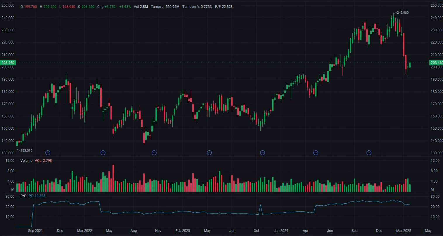 • The company’s lower P/E suggests undervaluation or slower growth.
